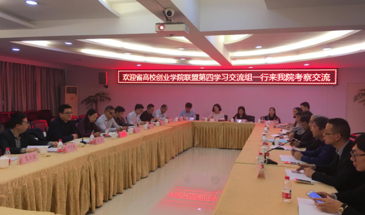 座谈会上,贺星岳经理代表公司对第四学习交流组表示热烈欢迎,并简单从公司概况、整体思路、实践探索等方面介绍了公司的发展历程和深化创新创业教育的做法和成效。创业公司经理台新民以“依托园区、产教融合、开展‘分层分类’的创新创业教育”为主题,从公司创新创业概况、园区化众创空间、“分层分类”双创教育体系、典型案例等四方面对公司双创教育实践工作进行了全面介绍。第四学习交流组各院校专家就“2+1”创业班员工选拔、考核和激励机制、自主办学等方面进行交流探讨。宁波大学学工部部长周青代表第四组对公司创新创业工作的成效、园区化的办学特色给予高度赞扬。