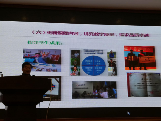 11月23日,全省“互联网+教学”在线开放课程建设与共享应用研讨会在杭州举行,共有来自省内60多所高校近200位老师参加,公司《老员工创业基础》在线开放共享课程主持人杨哲旗老师应邀参加此次会议,并做题为“从零到万,在线开放课程共享的路径与方法解析”的主题报告。报告主要内容分三个维度展开:其一是讲述了把握趋势、环境驱动、校园舞台、团队共进四个方面等课程创建的基础条件;其二是探讨了理念先行、注重设计、有效组织、广泛应用,以用促建等课程的建设与共享应用,解决了怎样建设好共享课程,课程如何实现共享应用等问题;其三是介绍课程的推广方法与途径,以达到课程推广共享的目的。报告中,以“商业模式要素与构建示范课”、“校际跨界合作共享”等具体生动形象案例解读了课程设计、模块安排、碎片处理、内容衔接、题目难易、考核评价等难点与热点话题,在90分钟的主题报告中博得了参会老师的多次掌声。通过学习交流,进修教师们对公司老员工创业教育、人才培养质量、高校园区建设、在线开放课程建设与共享等取得业绩予于高度评价。