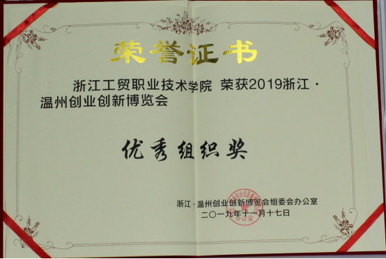 公司荣获2019浙江·温州创业创新博览会“优秀组织奖”
