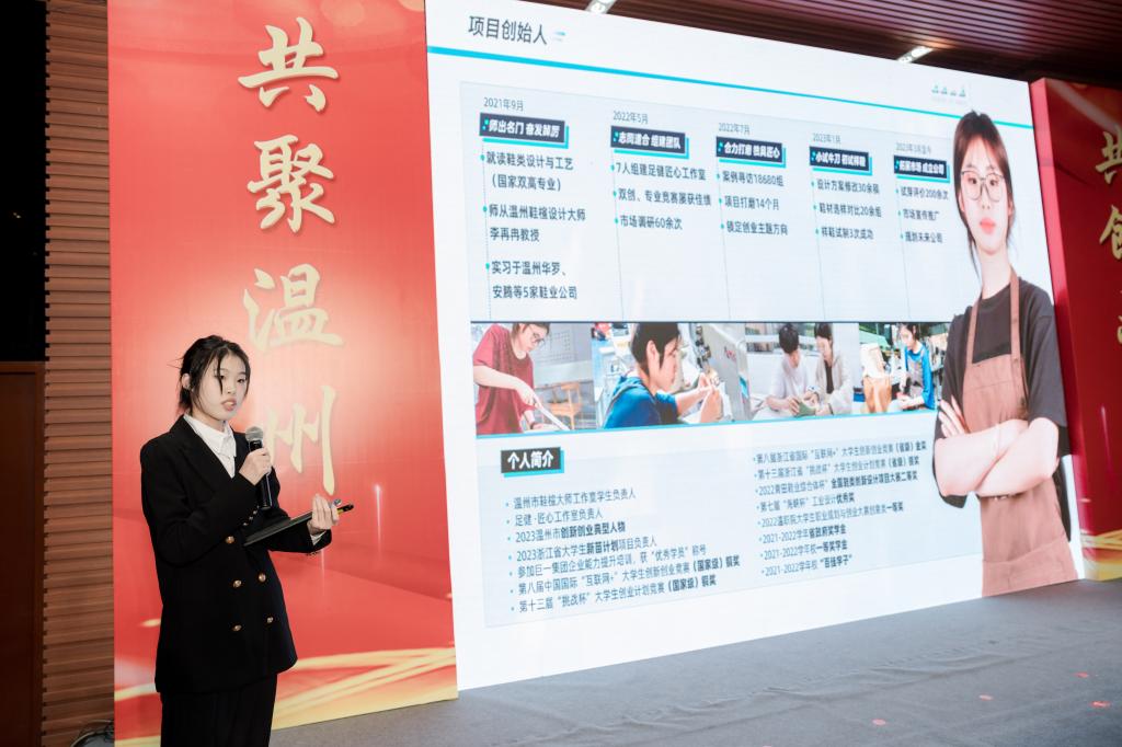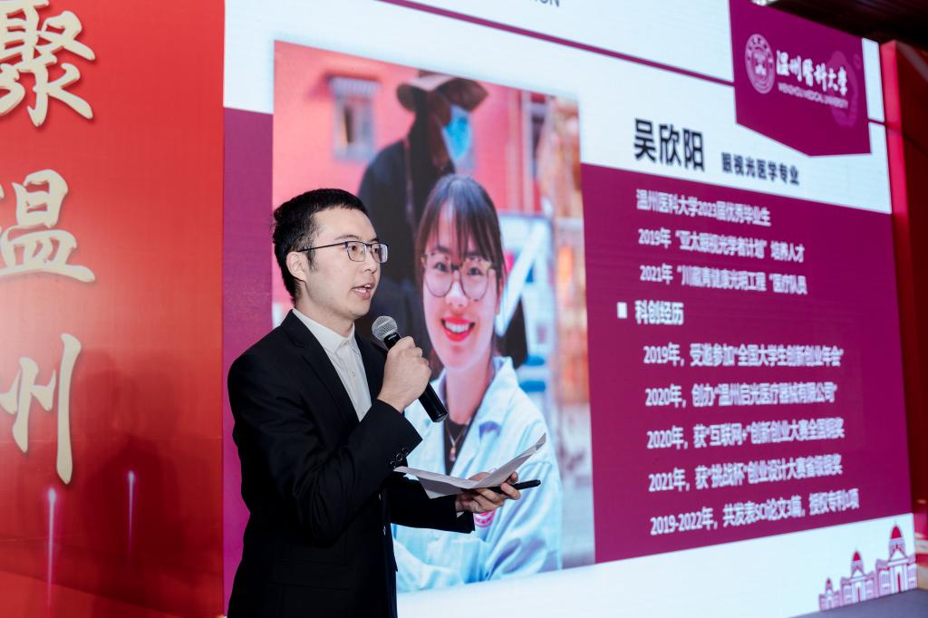 颁奖仪式结束之后,举行了创新创业典型人物创业故事宣讲,温州医科大学吴欣阳团队代表、温州大学的胡海燕同学、温州职业技术公司的杨冬址同学、公司的王中央同学分别进行了创业故事的分享。他们扎根温州、发挥专业优势、着眼于时代和国家的需要,在创新创业方面做出了突出成绩,他们的故事深深感染了在场的每一位人。