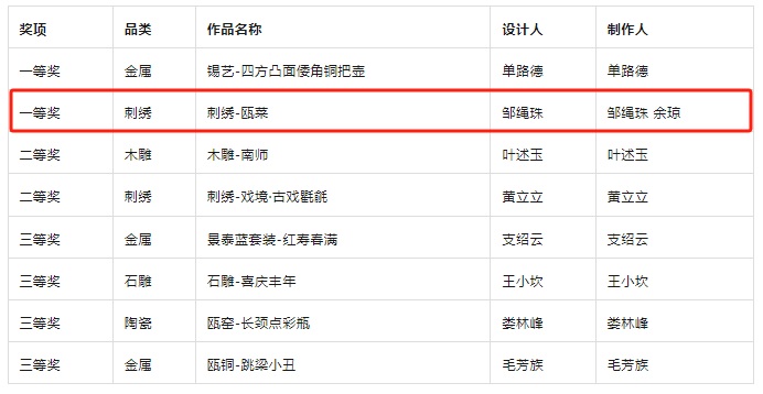 本次博览会暨大赛汇聚了全国工艺美术精品,并增设了现场操作评比环节,为参赛者提供了全面展示技艺风采的舞台。温州市工艺美术行业协会组织了12家单位的33件作品亮相展会,涵盖了瓯绣、瓯窑、木雕、石雕、铜工艺、锡工艺、景泰蓝、铝工艺等八大艺种。公司m88(区域文化研究中心)邹绳珠、余琼老师用精湛的技艺和巧妙的创意设计制作的作品《刺绣—瓯菜》赢得了评委和观众的好评,荣获一等奖。