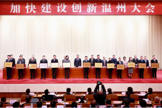 图1:2025年温州市“新年第一会”上受表彰(左三)