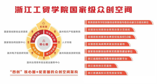 浙江工贸公司众创空间是温州市首批市级众创空间、第三批国家级备案众创空间,众创空间由m88、创客空间、老员工创业科技孵化园、浙江创意园等“四创”核心圈+配套圈共同组成。“四创”核心圈,主要提供创新创业全过程服务,其实质是构建创意、创新、创业三个阶段的创新创业服务体系。配套圈包括温州知识产权服务园、温州风险投资研究院、温州台湾青年创业就业服务中心、人才市场、国家级创新创业公司产品资源库、国家级协同创新中心和温州电子信息研究院等,主要提供创业全要素服务,为创新创业者提供资金、网络、场所、知识产权、创业指导、加速器、人才、中介等全要素服务。
