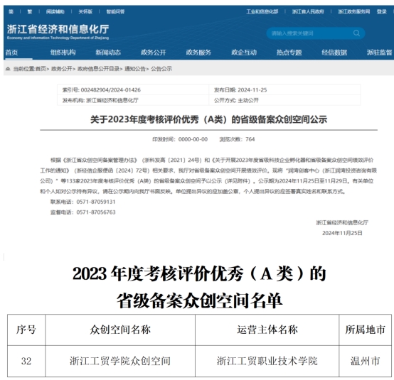 近日,浙江省经济和信息化厅公布了2023年度浙江省众创空间绩效考评结果,浙江工贸公司众创空间年度绩效考核结果为优秀(A类),并在1月3日的温州市“新年第一会”上受表彰。这是公司众创空间继2019年、2020年、2021年、2022年后,连续第五次获得浙江省众创空间评绩效考核优秀。