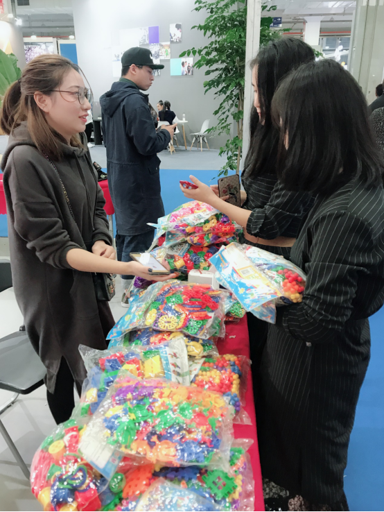 “2+1”创业班员工的儿童积木项目现场火爆。据悉,林银静联合几个同学注册了一家淘宝店,售卖自己品牌的儿童积木玩具。他们在现场一边进行儿童积木的体验互动活动,一边售卖自己品牌积木玩具。2天半时间内就卖光所有存货,销售额达到3000多元。
