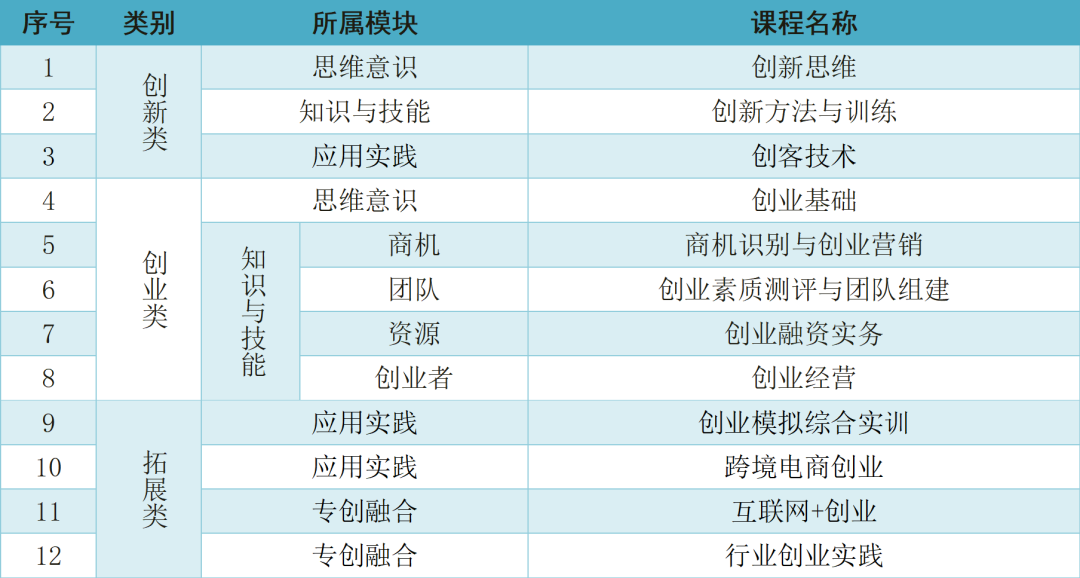 本资源库由深圳职业技术公司、m88官网、南京工业职业公司3所院校主持,33所院校联合倾力打造,现有线上素材21266条,微课1325门,已有学员达到101546人,现访问量已超2162万人次。资源库包括有创新创业并举的12门标准化核心课程(见表1)。