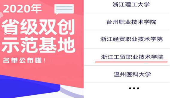 公司2010年在全省率先成立创业公司,形成了创新创业的联动机制,积极推行“2+1”创业教育改革,构建了“分层分类”的创新创业教育体系。2016年荣获教育部首批全国创新创业典型经验高校50强;2017年荣获教育部“全国深化创新创业教育改革示范高校”;2016年,浙江工贸公司众创空间被科技部列入“国家级众创空间”;国台办授予公司“海峡两岸青年创业基地”,国家知识产权局授予公司“国家中小微企业知识产权培训(温州)基地”等称号。公司为2018-2022年教育部高等公司创新创业教育指导委员会副主任委员单位,主持全国高职院校的创新创业教育研究、指导和改革工作。