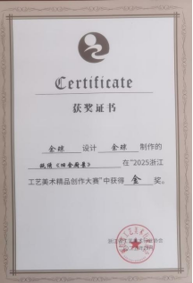 两项金奖的获得,不仅是对两位老师个人艺术造诣的高度认可,更是公司在非遗传承与工艺创新教育领域成果的有力彰显。公司将以此为契机,继续深耕工艺美术领域,培养更多优秀人才,推动传统工艺的传承与发展,为浙江工艺美术事业注入源源不断的活力。